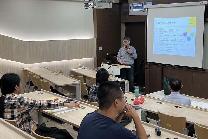 課程由場域選擇、研究抽樣、訪談大綱設計與研究倫理審查談起,說明碩士班學生如何透過檢核與三角校正,提升研究結果的可信度;在田野實作層面,李教授進一步說明深描與追問的運用、沉默與情緒線索的判讀,以及如何透過備忘錄連結資料與研究概念。資料分析部分則介紹開放編碼、主軸編碼與選擇性編碼的操作流程,並以「故事線」的方式,協助學生避免僅止於引言堆疊的寫作問題。