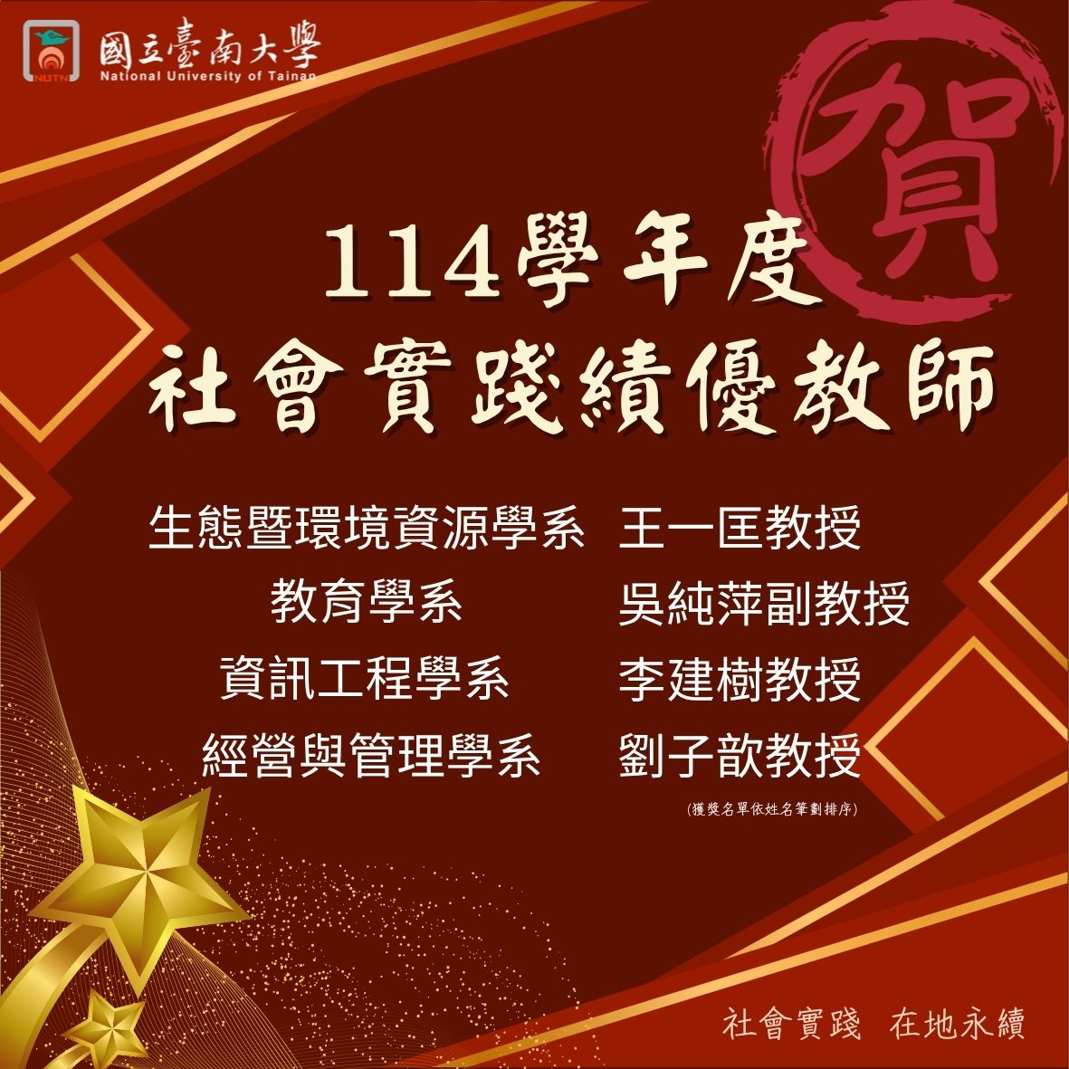 恭賀! 本系劉子歆老師「榮獲114學年度社會實踐績優教師」
